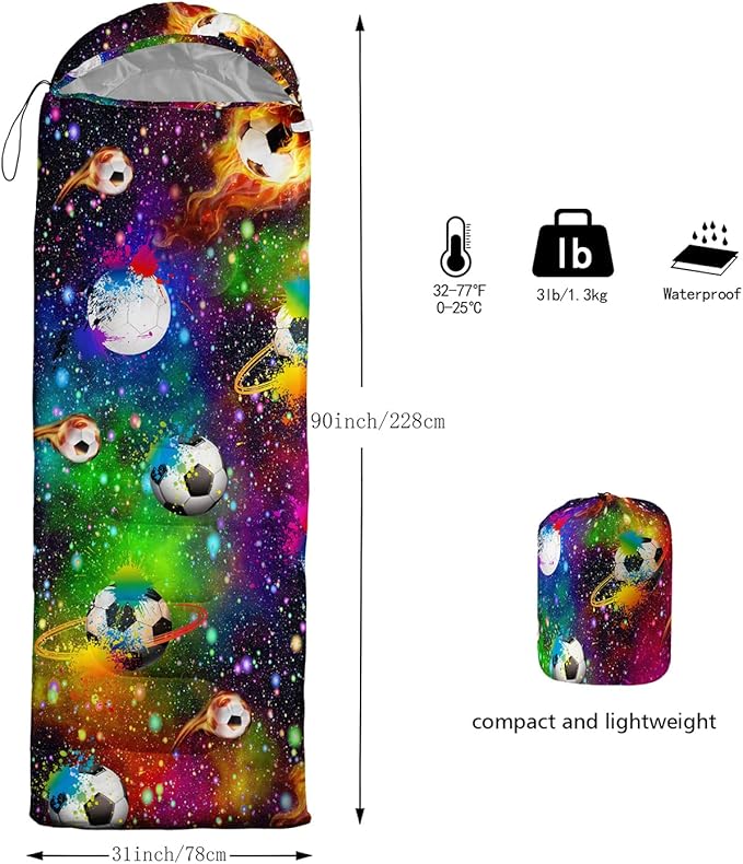 - kids sleeping bags For All Seasons- Our camping sleeping bags are designed to give you a good night's sleep. Ideal for spring,summer,fall,and winter,rated from 32°F to 77°F (optimal comfort temperature is 50°F to 65°F). Stay comfortable and warm in any condition at normal altitude. Can be used for any outdoor adventure,class camping,summer camps,couch surfing,indoor blanket,and as an emergency blanket for vehicles.
