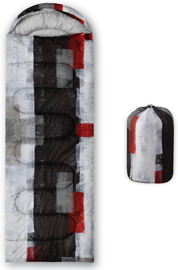 - Premium Material - The camping sleeping bag is made of premium 220T ripstop microfiber fabric,comfortable and breathable,lined with 220T cotton pongee. The waterproof outer protective shell is made of a unique hexagonal design and high-quality Material with double S-stitching and microfiber filling for optimal warmth and insulation to protect you from the elements. The bright colors are loved by boys and girls,great for kids and adults alike!