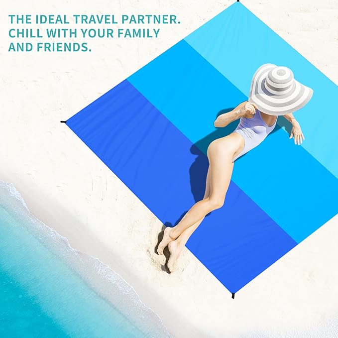 - ⛱ Beach Blanket Oversized:Tear-resistance,dry quick.Also can be used as a rainshed,sunshade,tent,toddler crawl,emergency mat etc.Feel comfortable to lying down.Won't irritate your skin and fine stitches.