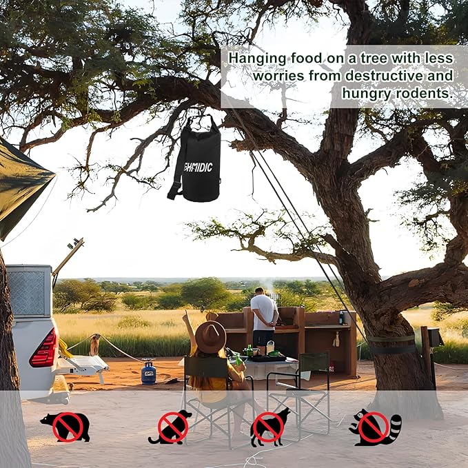- 【Safety Design】Hanging food on a tree with less worries from destructive and hungry rodents. Enjoy your sleep or hiking without worrying about your food. Bears, wolves, raccoons and other wild animals will not able get to your food.