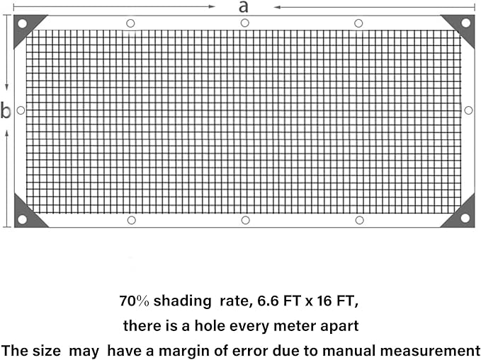 - High Shade Rate - Our Shade Cloth can resist rays and most sunlight while air can still flow through so as to create a comfortable cool and shaded place for people or plants. It blocks 70% of the sunshine and bring 70% the shadow, so 30% of the sunshine can through it.