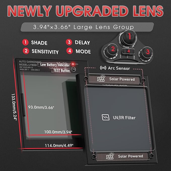 - Fast Auto-darkening: Features 4 Arc Sensors for reliable arc detection, ultra-fast switching (1/30000 sec), and adjustable Sensitivity and Delay Controls for perfect performance