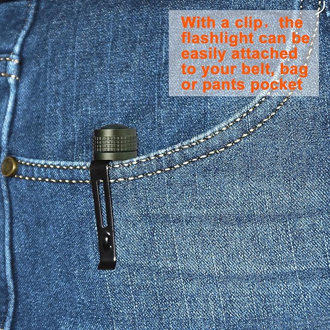 - Pocket Size: This pocket flashlight is small and light enough to slip into a pocket, backpack or purse. With a clip, the pen light could also be used as cap light for your convenience. Easy to clip to your belt, bag, binder, shirt, or pants pocket.