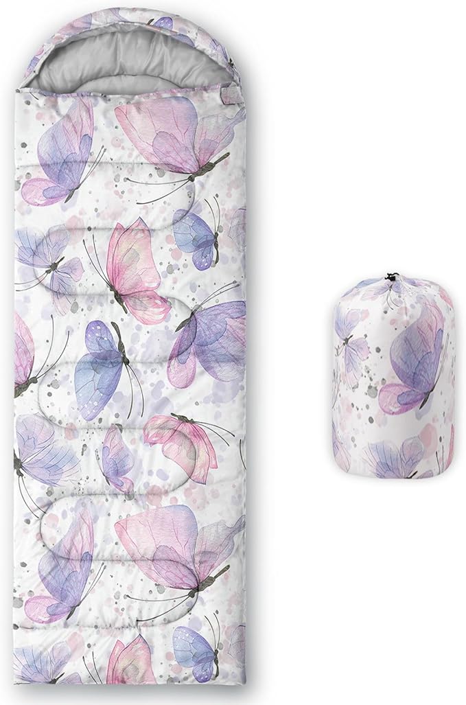 - SUITABLE:The sleeping bag can be used for 3 Seasons.SIZE:90.5"L x 31.5"W Suggenal extreme temperature: 41 ℉ -77 ℉.Applicable in a variety of scenarios,such as Travel camping pajamas party,It's very suitable for you to travel with your children.Half-circle hood with adjustable drawstring,which can keep you warm and prevent your humidity