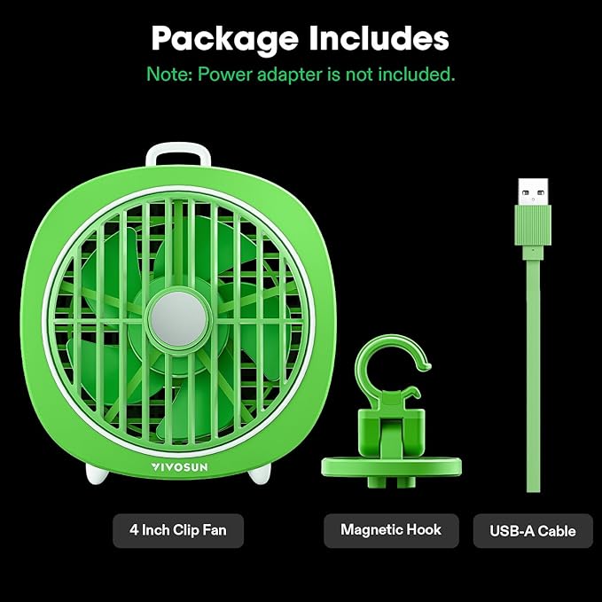 VIVOSUN AeroWave D4, 4” Grow Tent Clip Fan with Magnetic Hook, 3-Speed Strong & Quiet Airflow, Adjustable Airflow Angle for Hydroponics, Circulation & Cooling, Green, 1-Pack