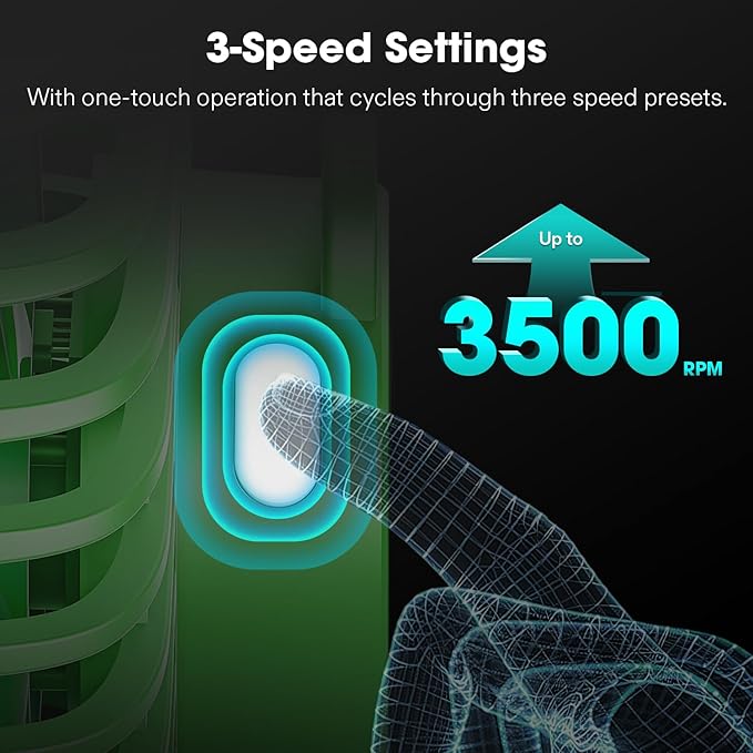 - 3-Speed Settings: With one-touch operation that cycles through three speed presets up to 3500 RPM, this compact fan offers tailored cooling customization; And with the integrated memory feature, your chosen fan speed is automatically retained if power gets disrupted