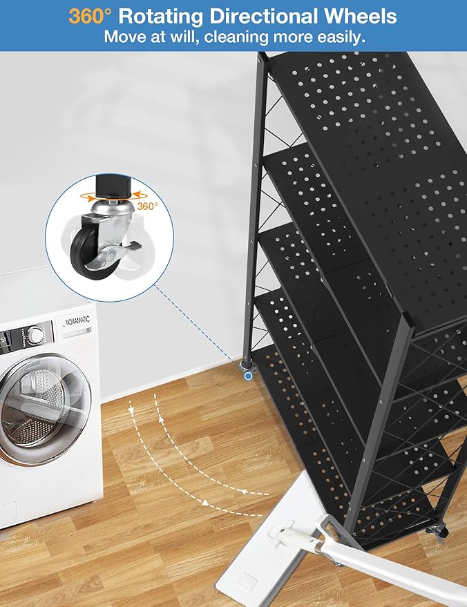 - [2X Thicker Than Other Folding Racks] Rock-solid and worry-free load-bearing. We utilize thickened and widened iron plates, with columns measuring 1.5x3 cm, providing heavy-duty shelving with exceptional stability, allowing you to confidently place a variety of items.