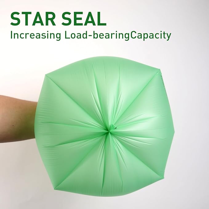 - [MULTI-USE COMPOSTABLE BAGS 33 GALLON TALL KITCHEN] Octagonal bottom design reliably prevents leakage. The bottom of the large compostable bags are integrally formed, which is convenient for collecting garbage and keeping it clean. This Compostable trash bag is suitable for yard, Kitchen, car trash, etc.