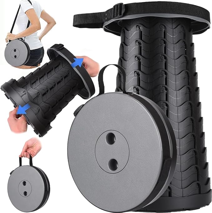 Fishboy Upgraded Collapsible Stool, 400lbs Max Weight, Lightweight But Sturdy, Portable Retractable Folding Telescoping Foldable Camping Stool for Adults Outdoor Fishing Hiking Gardening Travel BBQ