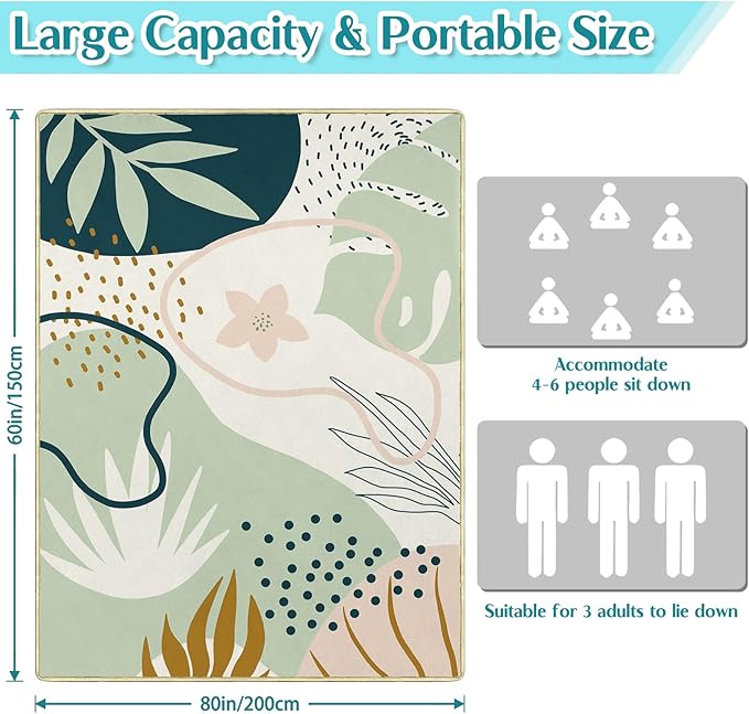 - 【Oversized for 4-6 Adults】This Extra Large boho picnic blanket is 60"x 80", which can comfortably accommodate 4-6 adults and is still spacious enough. Provide enough space for family gatherings, and provide safe and comfortable places for your children and pets to play.