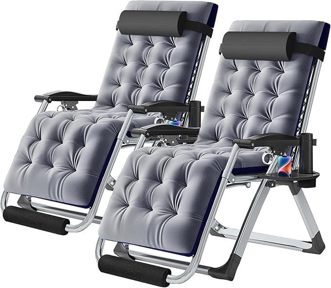 NAIZEA Widened Zero Gravity Chair 29" XL,Oversized Outdoor Lounge Chairs, Folding Reclining Camping Chairs with Cup Holder, Ergonomic Patio Lawn Chair for Balcony Beach Deck Yard