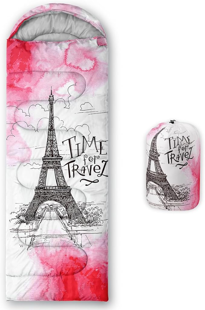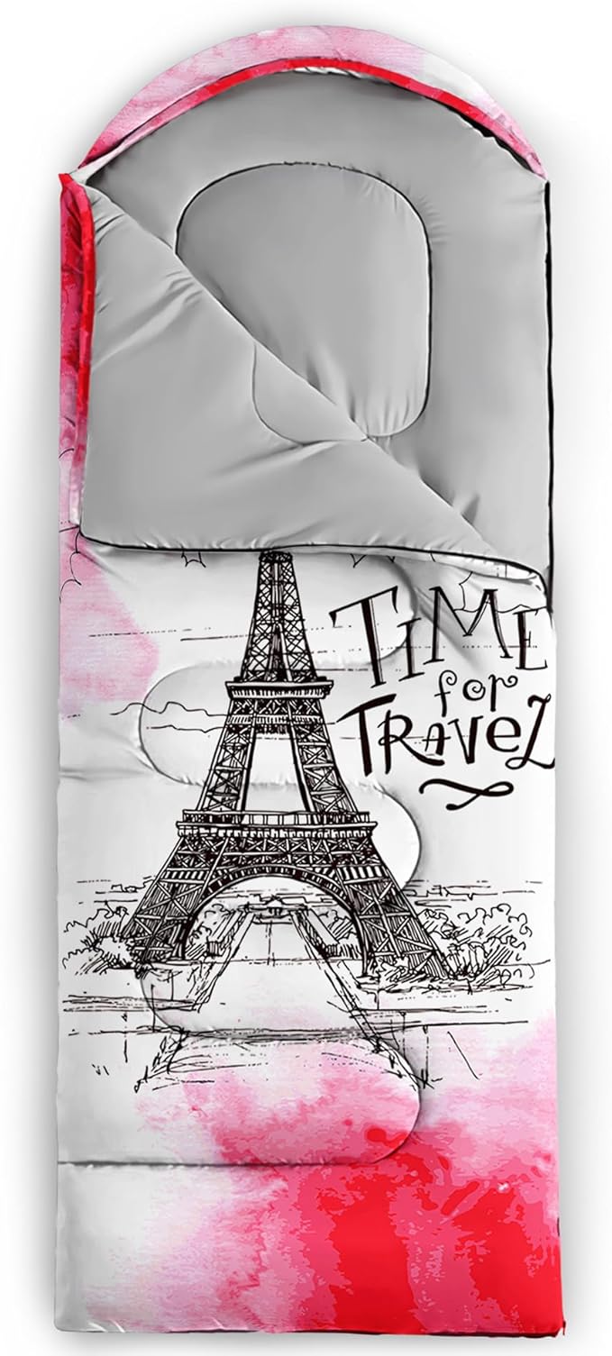 - 【Fits For 3 Seasons】: Size - 31 by 90 inches (W x D). Our Paris Architecture sleeping bag can be used in 3 seasons with a design temperature of 32℉-77℉(0℃-25℃). These Sleeping bags also have a weather resistant waterproof design to keep you warm and prevent you from any dampness.