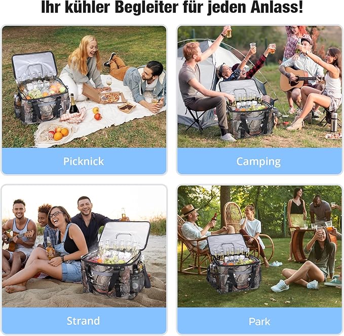 - Enjoy Fresh Cooling Anytime: WARMOUNTS collapsible cooler bag is built with 5 layers of thick insulation to keep drinks and food chilled for up to 20 hours. Great for long hikes, beach days, or camping trips—your refreshments stay frosty wherever adventure takes you