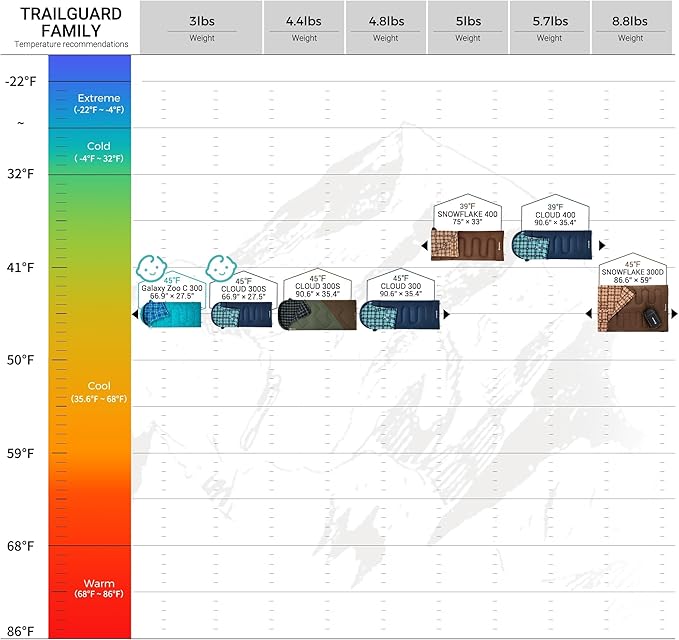 - WARMTH YOU CAN RELY ON-Stay Cozy in Any Weather: This adult sleeping bag is filled with 300g/㎡ cotton hollow fiber for excellent warmth, thermal insulation, and moisture resistance. Its half-circle hood with an adjustable windproof drawstring keeps your head warm, while the Velcro collar prevents zipper gaps. With a comfort temperature of 44°F, limit of 35°F, and extreme rating of 8°F, it’s perfect for adventurers in cool conditions.