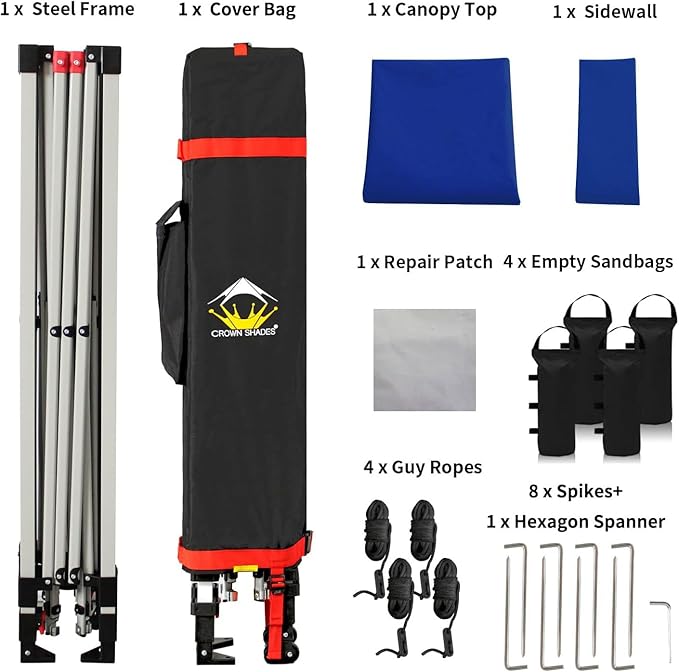 - FAST CLIP CANOPY FABRIC - Our innovative clip system quickly secures the canopy to the frame.The silver-coated interior offers UPF 50+ protection for a cooler, safer shade. Durable 150D fabric makes the tent water and flame-resistant (CPAI-84). The Fast Clip system prevent wind lift and rain pooling, reducing fabric tearing risks. The included 150D sidewall adds side sun protection. Perfect for outdoor events, this design ensures easy setup and durability