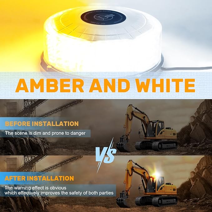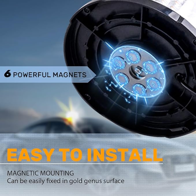 - 【Strong Magnetic Base】Nrgedzam's amber white led roof top strobe light there are a total of 6 high-strength super magnets at the base, which equipped with the larger size of the thick rubber suction cup, and it can be easily adsorbed on any metal surface. This rooftop beacon flashing lights can be quickly installed in 5 seconds or removed from any metal (driving speed up to 80 mph without falling off); Through a high-strength magnetic base, the beacon light not only meets the stable demands of such as road rescue and engineering vehicles, volunteer, but is also applicable to various types of vehicles.