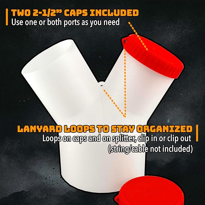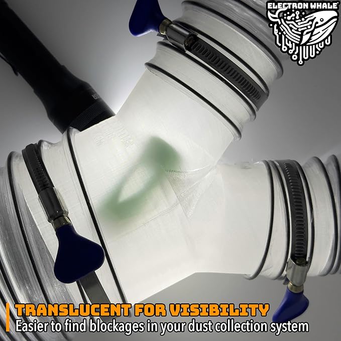 4" to 2-1/2" 2-Way Dust Collection Splitter Junction Fitting, Multi Port Fits Standard Hoses and Shop Vac Accessories, Dust Medusa, White Translucent
