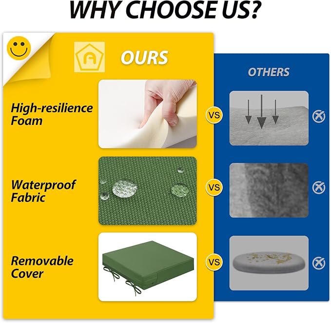 - Upgraded Cushion Foam: Thick, powder-free, high-resilience foam quickly regains shape after use, providing soft support and lasting comfort. It helps relieve pressure, enhances relaxation, and increases durability for long-term performance