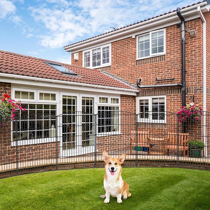 - Detachable Fashionable Fence:The expandable fence can be added or removed freely to assemble and expand a completely flexible area. You can arrange the dog fence into any shape you need, such as rectangle, square, polygon and other shapes to decorate your house, yard, garden, path , terrace. It can also be used as a pet fence to build a temporary activity area for dog and other small animals such as rabbit, duck and turtle