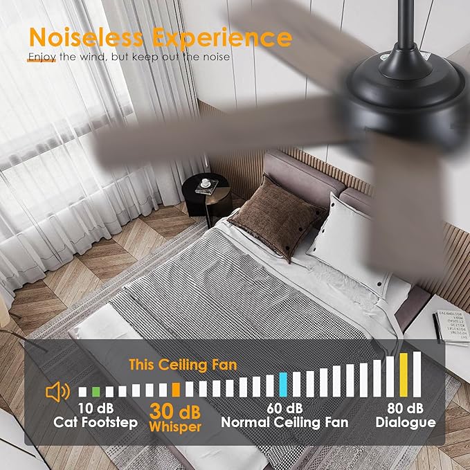 - Reversible DC Motor: Equipped with a reversible DC motor, this modern ceiling fan delivers powerful airflow while consuming less energy. Enjoy a cool breeze in summer and improve air circulation in winter. Plus, the low profile ceiling fan ensures quiet operation, making it ideal for bedrooms, living rooms, and covered patios.