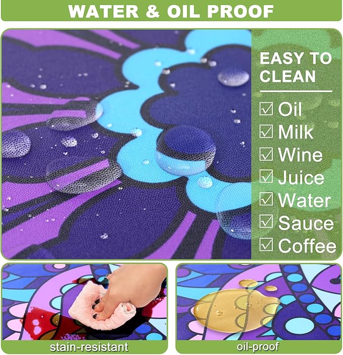 - Oil and Water Proof: Crafted from high-quality polyester, ensures no spills or stains soak in and easy to clean - just wipe it down with a damp cloth, and it's good as new. The material is also colorfast, wrinkle resistant and wear resistant, and whether used indoors or outdoors, this tablecloth will ensure that your table will still look vibrant after multiple uses