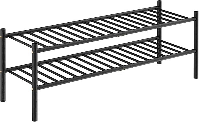 2-Tier Bamboo Long Shoe Rack, Free Standing Wood Shoe Shelf Storage Organizer for Closet Entryway Stackable 35"x11"x13" (Black)