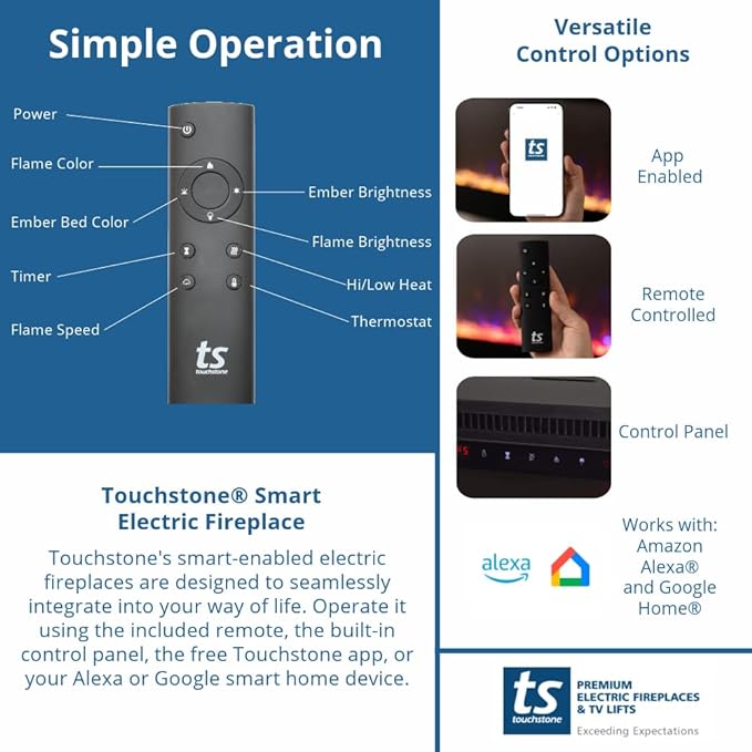 - SMART AND CONVIENENT CONTROL: Fury is equipped with Wifi connectivity, as well as Alexa compatibility, giving the option to control heater and flame settings from the onboard touchscreen, the included remote control, the smartphone app, or by voice command.