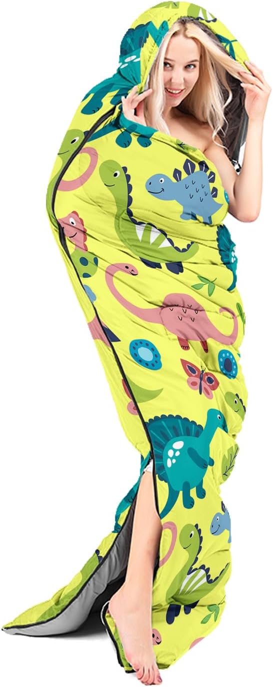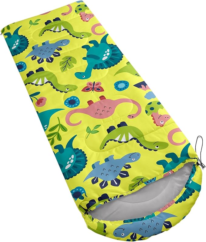 - Cartoon Colorful Dinosaur sleeping bags For All Seasons- Our camping sleeping bags are designed to give you a good night's sleep. Ideal for spring,summer,fall,and winter,rated from 32°F to 77°F (optimal comfort temperature is 50°F to 65°F). Stay comfortable and warm in any condition at normal altitude. Can be used for any outdoor adventure,class camping,summer camps,couch surfing,indoor blanket,and as an emergency blanket for vehicles.