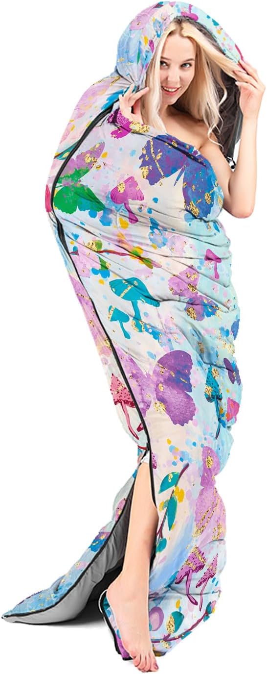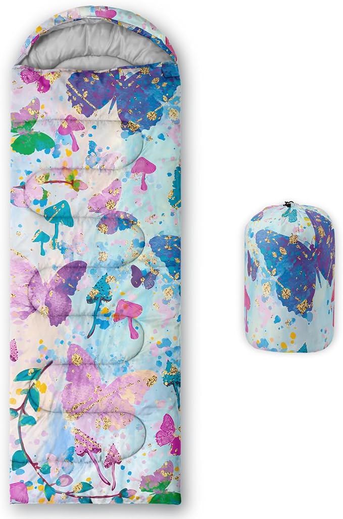 - Tie Dye Gold Butterfly sleeping bags For All Seasons- Our camping sleeping bags are designed to give you a good night's sleep. Ideal for spring,summer,fall,and winter,rated from 32°F to 77°F (optimal comfort temperature is 50°F to 65°F). Stay comfortable and warm in any condition at normal altitude. Can be used for any outdoor adventure,class camping,summer camps,couch surfing,indoor blanket,and as an emergency blanket for vehicles.