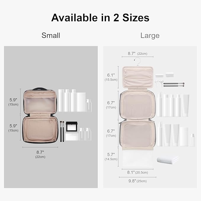 - Size: 8.7” L*3.15” W*5.9” H, 2 separate compartments with front zippered pocket for great organization, suitable to pack both men and women toiletries