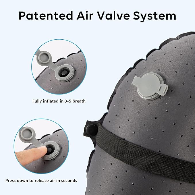 - Easy to inflate and deflate: TOBTOS camping pillow features a unique valve design that can be fully inflated with only 3-5 breaths. You can adjust the softness and hardness of the pillow according to your sleep preferences