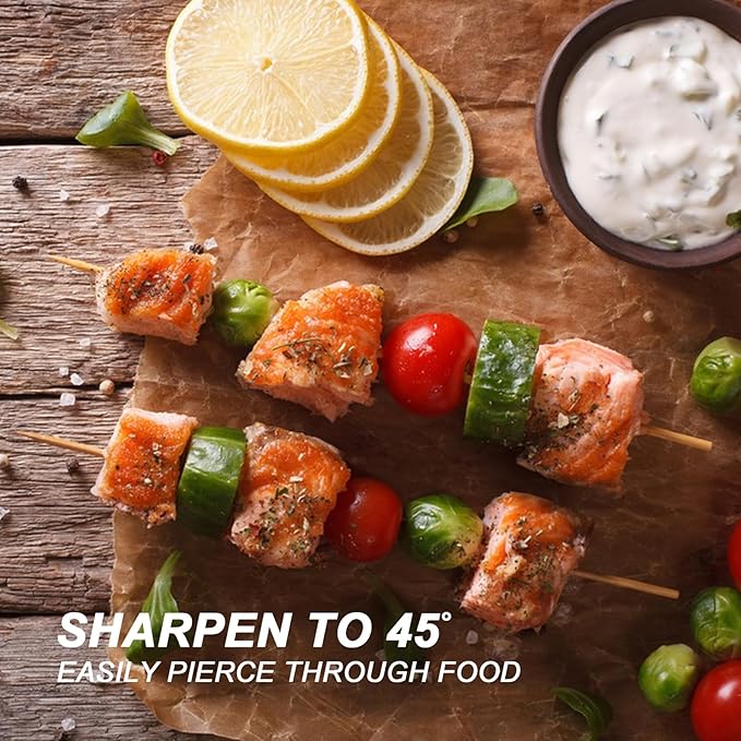 - High quality - Our bamboo skewers is selected, which is handmade and polished, pointed tips, easy to poke through food, with a smooth finish, no burr.