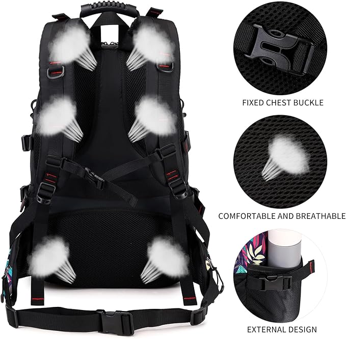 - Large Capacity: With 40L storage space, this backpack features with multi-compartment design includes one main zipped compartment, several front pockets with zippers and two side pockets. Large capacity helps you easily organize all your essential items.