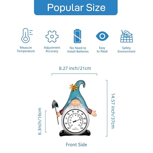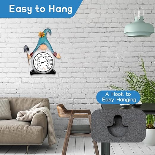 - Unique Design: The concept of this outdoor thermometer appearance design comes from garden gnomes, which means guardianship and wealth. This kind of thermometer not only can detect the thermometer changes and make a reference basis for providing a comfortable life but also can decorate the room and make people feel happy