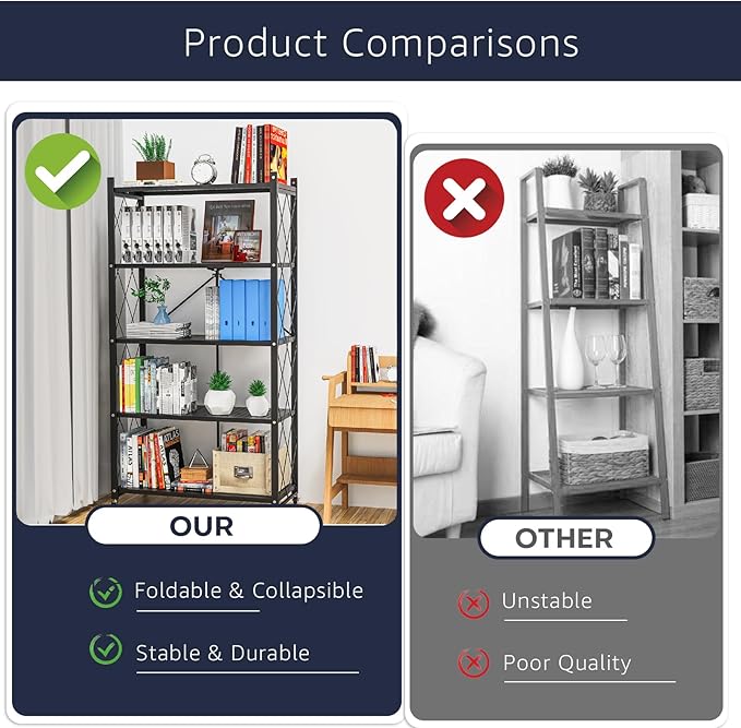 - ✅【 Space Saving Design 】Within 5 seconds, you are able to fold and store away this foldable shelf. Easily collapsing down to a width of 4 inches, you can conveniently store this shelf in your pantry, garage, or even in between shelves to keep it out of sight.