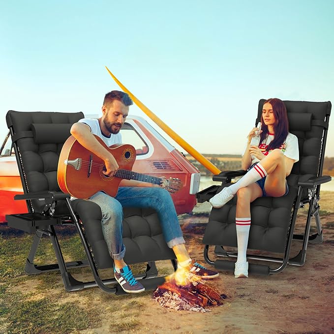 ZENPETIO 29In XL Zero Gravity Chair w/Cushion, Zero Gravity Recliner Lounge Chair for Indoor and Outdoor, Reclining Camping Chair for Lawn, Anti Gravity Chair with Cup Holder and Footrest, 440LBS