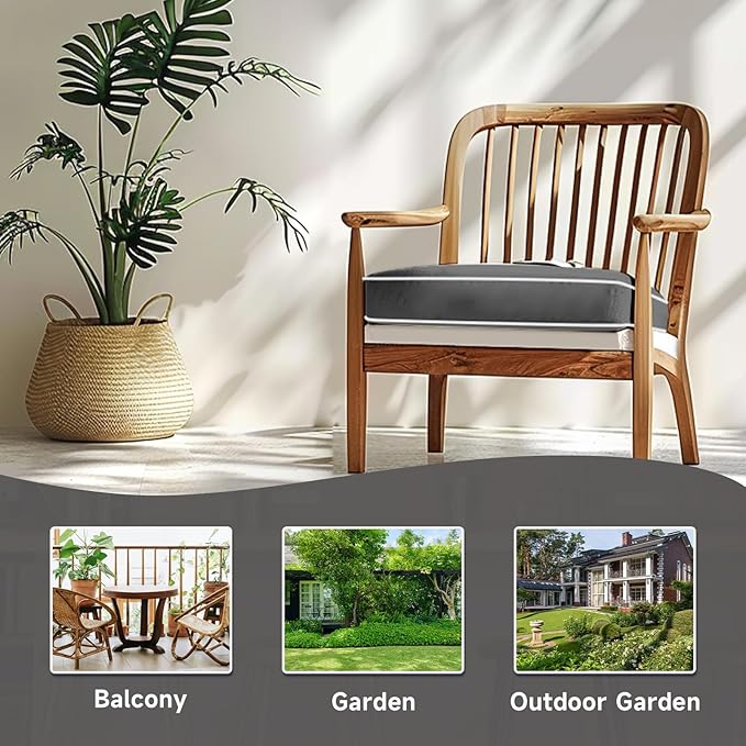 PNP FKJP 2 Pack Outdoor Chair Cushion 20" X 20" X 4", Waterproof Outdoor Seat Cushions with Non-Skid Ties,Dark Gray (Cushion + Cover)