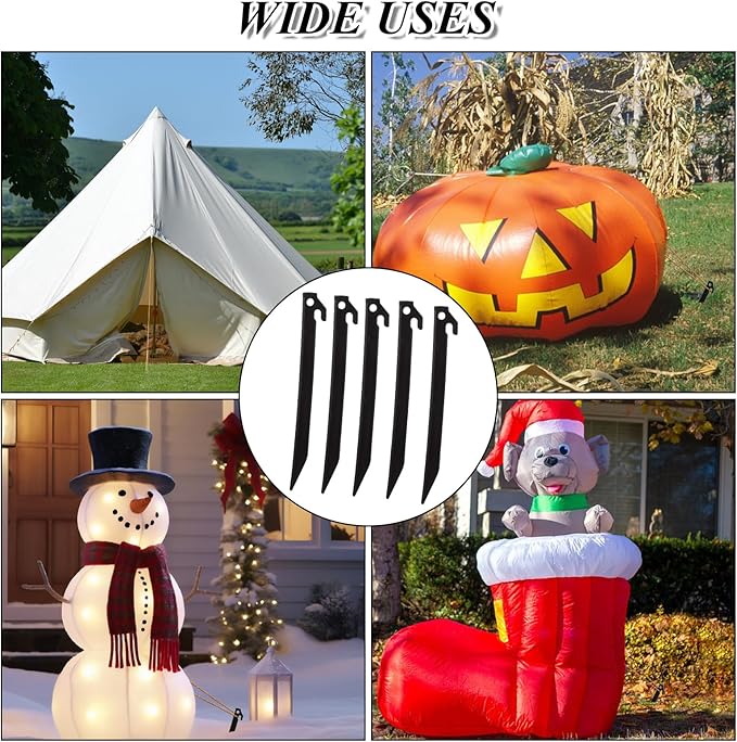 - Easy To Use: The easy-to-use plastic camping stakes require no special skills or tools. Simply angle them into the ground and secure with rope for a quick and stable setup that can be easily repeated for each tent section