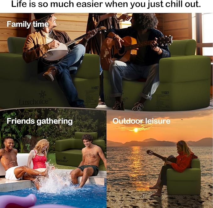 - Portable Air Sofa For Anywhere: Luxchoice blow up sofa is a must-have outdoor gear, which can be easily folded for compact storage, with a lightweight and Large capacity bag(18.5"*22.4"). Our air pump can deflate the blow up couch in 2 mins, ideal for outdoor adventures or quick indoor setups