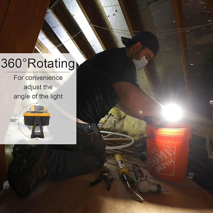 - 【Adjustable Light】 This rechargebale portable work light can be us as a floodlight ,the buttons on the back of work light for an easy adjustment for 4 modes -high, low, SOS and flashing for versatility. Meeting different lighting requirements for job site & security lighting. Can easily find object quickly in dark environments