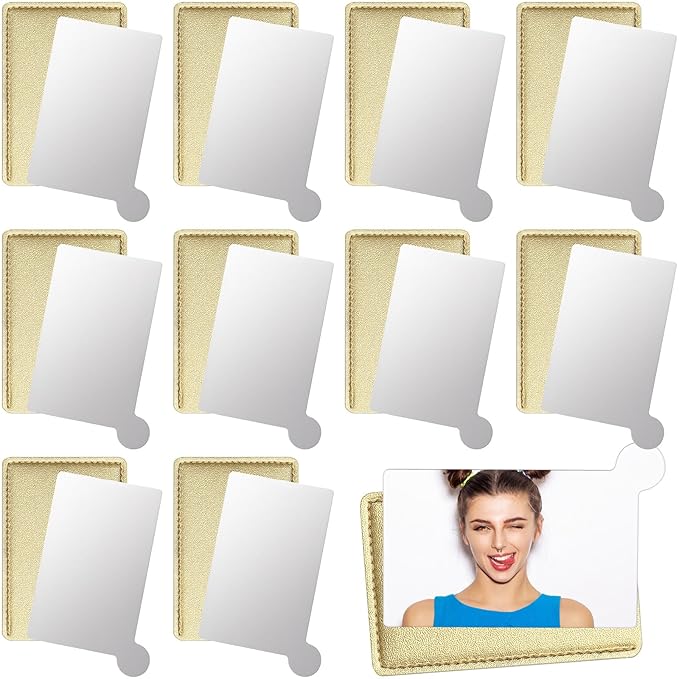 Jetec 10 Pieces Pocket Compact Mirrors Mini Mirror for Purse Wallet Small Handheld Stainless Steel Unbreakable with PU Leather Case for Men Women Travel Camp Signal Makeup(Gold)