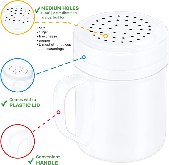 - Medium-sized holes ideal for dispensing a variety of toppings