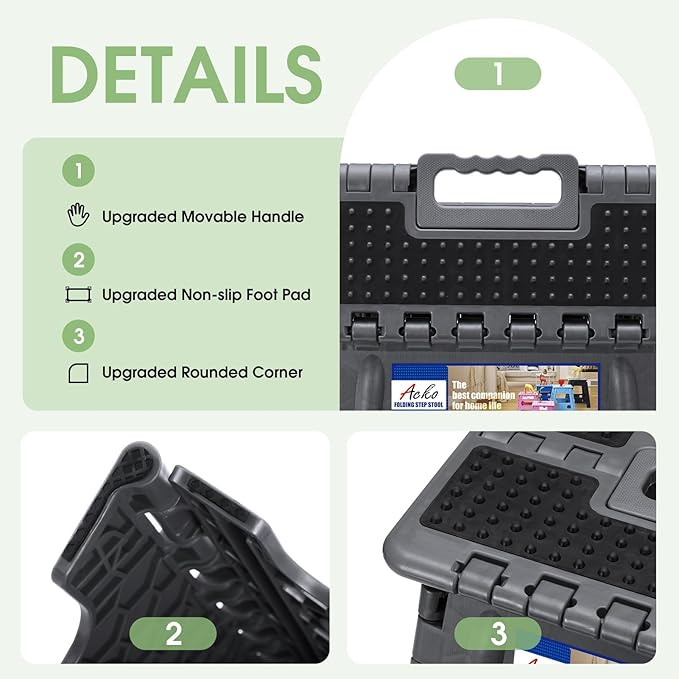 - 【Sturdy and Reliable】Our patented step stool with a pin structure,Max holds up to 400 lbs.Reach new heights with our portable stool design, heavy duty for adults and kids alike.