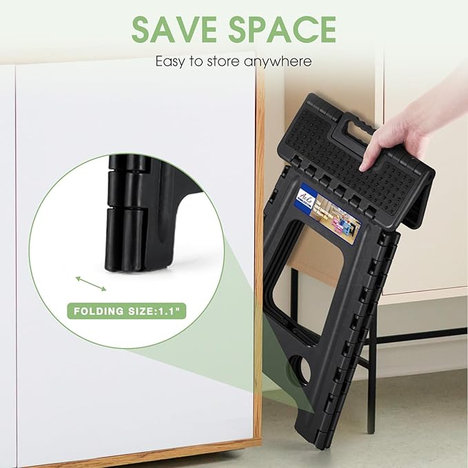 - 【Versatile and Multipurpose】Folding stool is suitable for a wide range scene, from indoors to outdoors, high enough for most reaching without a step ladder,catering to various needs comfortably,great for kitchen, closet, office, garden, RV, camping, fishing or anywhere else you might need a little extra height.