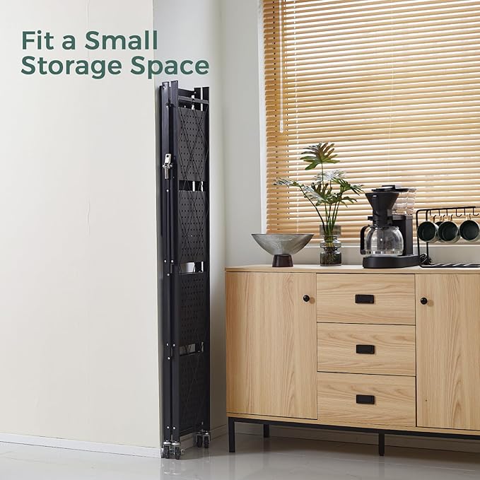 - [Perfect Size] Open size(with wheels): 24 x 11 x 58" The height on each layer not only creat more additional space but also keep your home clean and orderly. Folded size(with wheels): 3.54 x 11x 58". The storage rack can be stored under bed, behind doorways and so on, It will not take up more space when not in use.