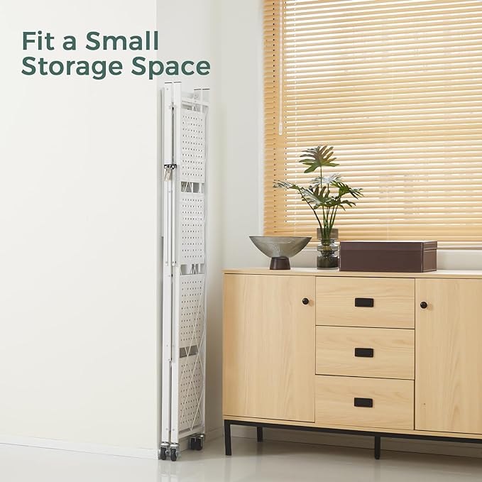 - [Free Installation Shelving Unit] The pre-assembled shelving unit takes the hassle out of installation for you and lays out in 5 seconds. With 4 wheels, it's easy to push it anywhere. Foldable design for easy carrying and storage.