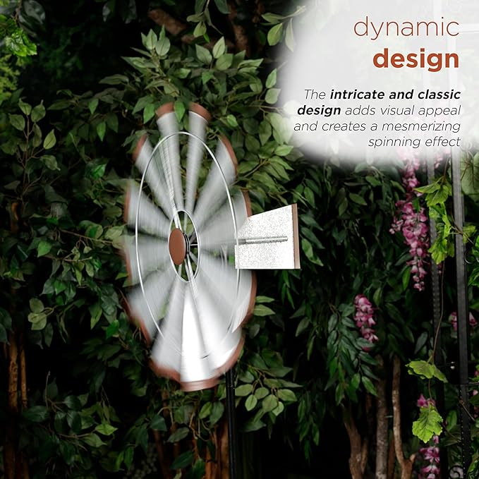 - KINETIC YARD ART: The wind-powered spinning blades offer dynamic motion that captures attention and enhances your outdoor aesthetic. Whether placed in your garden, lawn, or along pathways, the rotating windmill adds kinetic energy to your landscape.