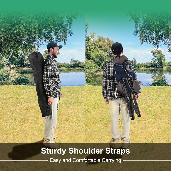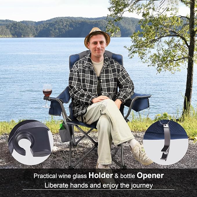 Northroad Oversized Camping Chair, Full Padded Outdoor Folding Chair Support 350 LBS, Heavy Duty Lawn Chair w/Cup Holder, Cooler Bag, Shoulder Straps for Adult-Blue