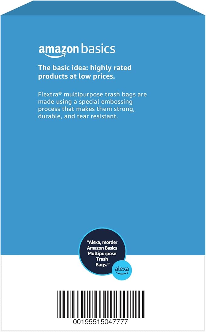 Amazon Basics 30 Gallon Flextra Strength Multipurpose Drawstring Trash Bags, 20% Post Consumer Recycled, 50 count