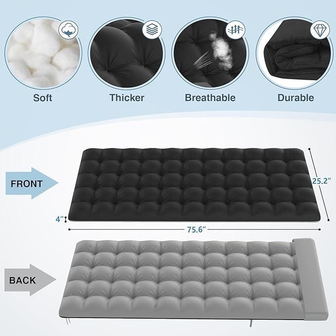 - 【Removable Pillows&Mat】Our camping bed chair has soft and detachable mattress and pillows,also has a bag for store and carry. And the cushions are thickened to 4" to make you more comfortable and warm when resting or sleeping. The cushions are made of skin-friendly and comfortable fabrics, which are also very suitable for sensitive skin or children When the weather is hot, you can also remove the mat